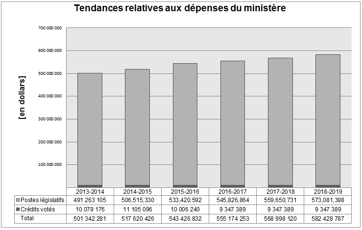 Le coût de fonctionnement net de l’organisation montre une hausse de 25,4 millions de dollars par rapport à l’exercice financier précédent. Cette hausse est le résultat d’une disposition de la Loi sur les juges qui permet la hausse annuelle des traitements des juges selon l’Indice de la rémunération pour l’ensemble des activités économiques et une augmentation du nombre de pensionnés qui reçoivent des prestations en vertu de la Loi sur les juges.