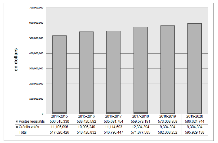 Les dépenses réelles du Commissariat en 2016-2017 s’élevaient à 546 796 447 $.