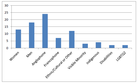 The Board’s Terms of Reference (http://www.fja-cmf.gc.ca/scc-csc/2016-MalcolmRowe/mandate-mandat-eng.html), stipulate that members must actively seek out qualified candidates and, in establishing a list of qualified candidates, they seek to support the Government of Canada’s intent to achieve a gender-balanced Supreme Court of Canada that also reflects the diversity of members of Canadian society, including Indigenous peoples, persons with disabilities and members of linguistic, ethnic and other minority communities, including those whose members’ gender identity or sexual orientation differs from that of the majority.